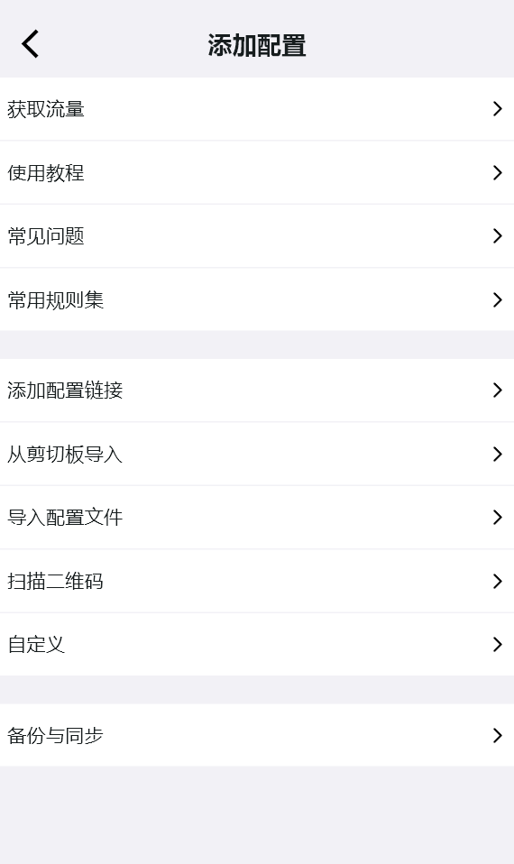 添加配置连接:支持包括以下等类型的订阅配置链接,以及部分配置文件内容